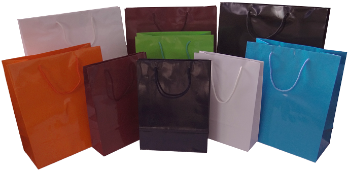Tašky jsou vyrobeny z papíru o gramáži - 170g/m2, zušlechtěné lesklým laminem, úchyt je šnůrový.